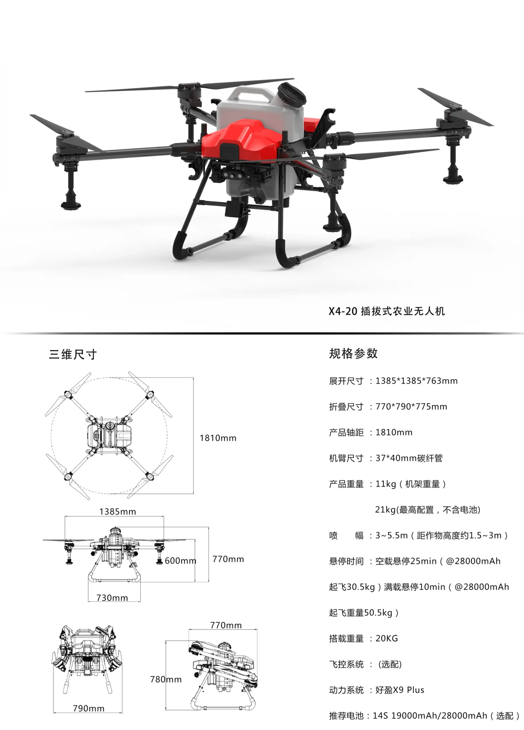 X4-20 20KG 农业植保无人机